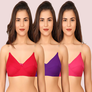 The 3 Pairs Clear Transparent Back Regular Bras offer a blend of style and versatility with their transparent back design. These bras provide comfortable support while remaining discreet under various outfits. Available in assorted colors, this pack is perfect for adding variety and convenience to your everyday essentials, making them a great addition to any wardrobe.